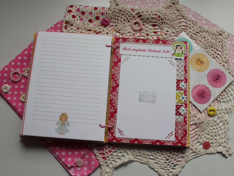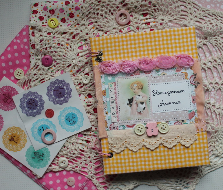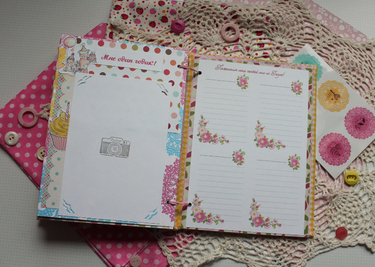 Привет,девочки . Вчера закончила очередной заказ: альбомо-блокнот для крошки -малышки Алиночки . Все как обычно :многофото/карточки достижений и успехов /листы для ведения записей мамочкой. Стихотворение на первом форзаце и два кармашка -для бирочки и фото УЗИ -на втором .