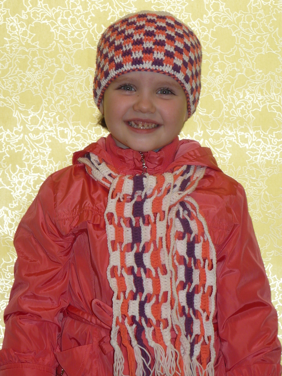 Женечка, чудеснейший комплект! И шарфик необыкновенный! Полинка растет на глазах!