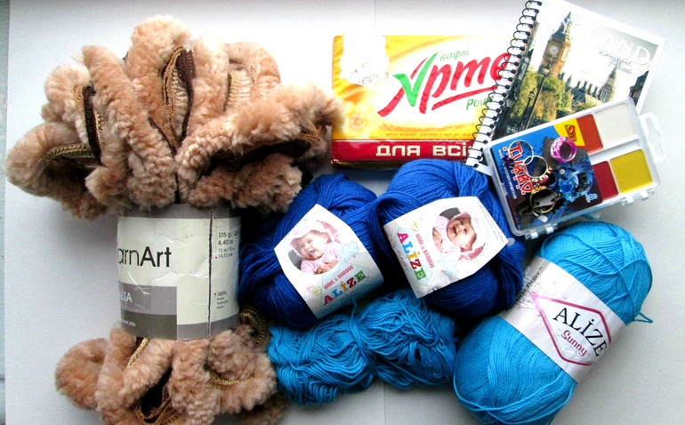 Я была счастлива, рассматривая пряжу, детки были счастливы, разбирая презентики. С трудом отобрала у них, чтобы сделать общее фото ))) Сначала хотела подождать солнечной погоды, чтобы сфотографировать слоника во всей красе, но потом поняла, что через пять минут половины слоника у меня уже не будет, куда там ждать))).