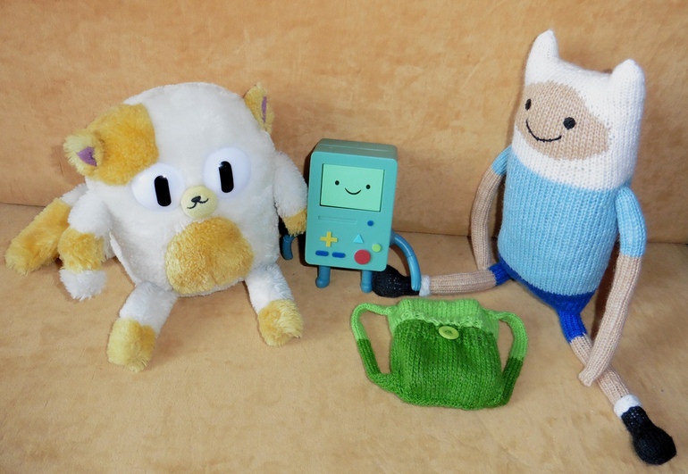 Игрушечный мир - животныеЗнакомьтесь. Это один из главных персонажей мультсериала "Время приключений". Его зовут Финн. Финн носит голубую футболку, синие шорты, белые носки с чёрными ботинками и белую шлемовидную шапку (из шерсти гризли) с ушками - он считает эти уши своими собственными и, к примеру, закрывает их, чтобы не слышать чьи-то разговоры.