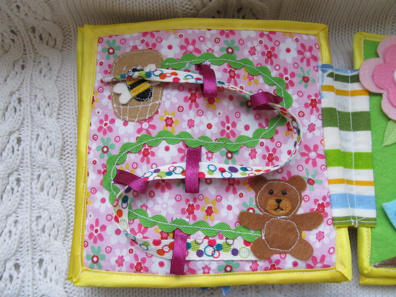 Сшила свою первую книжку-малышку для племянницы. На фото моя Конфетка тестирует.