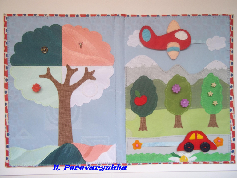 Развивающие игрушкиПосле книжечки "Времена года" для доченьки я сшила еще два вот таких разворота для двух очаровательных мальчишек)