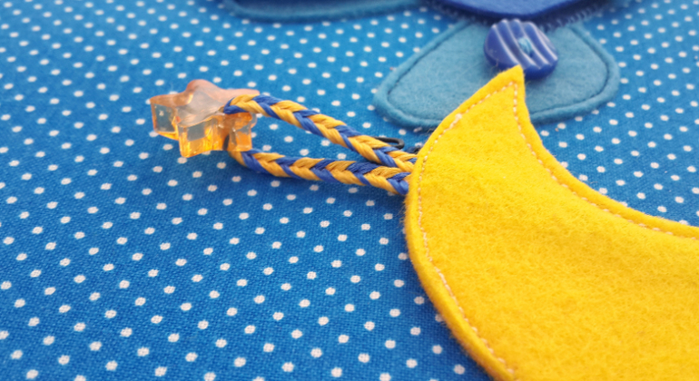 Разглядываем разные пуговки, учимся цеплять на крючки и за пуговки.