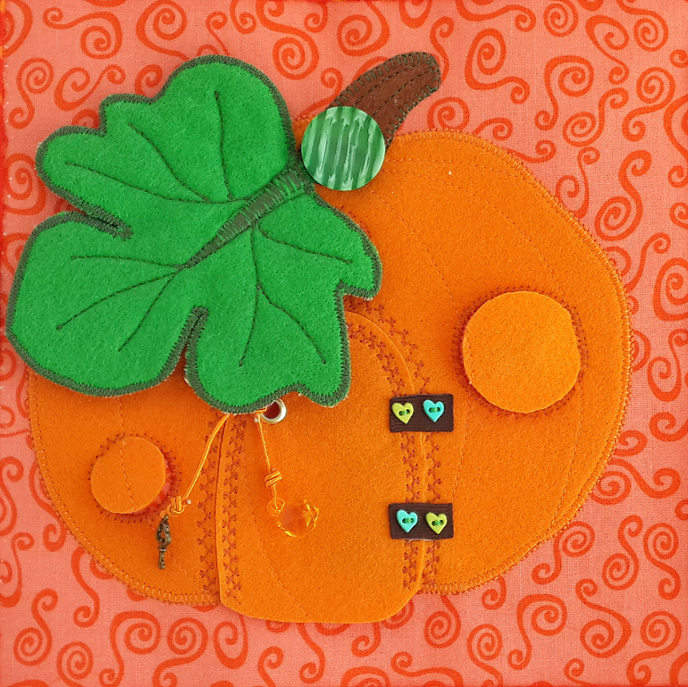 Тыква - это домик. Листик шуршит и крепится на пуговку.