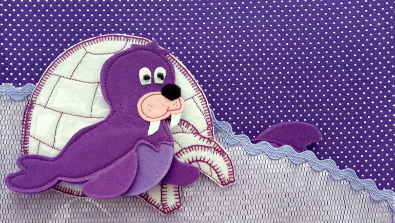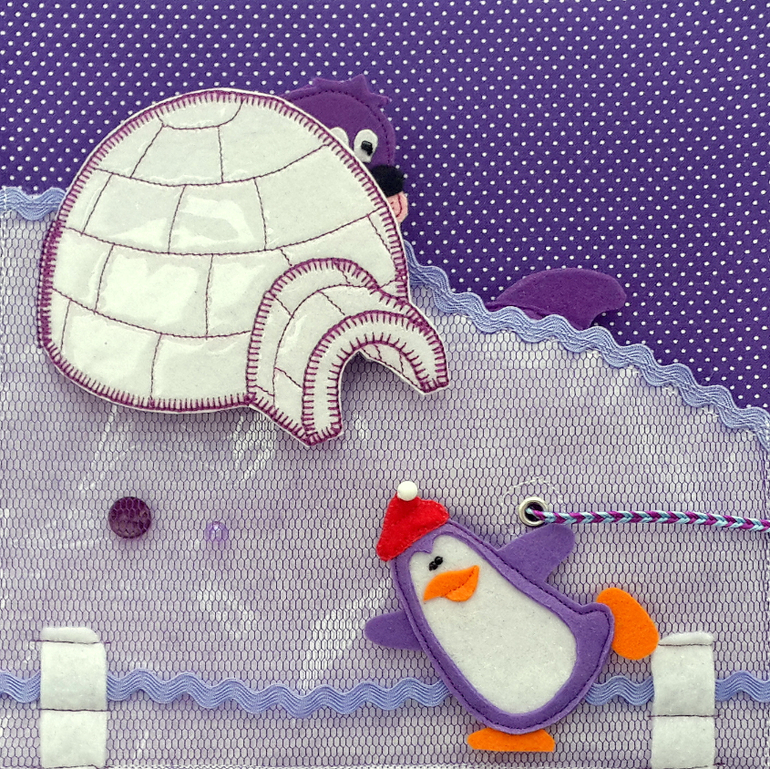 Подо льдом плавает касатка. Прячется обратно с помощью шнурочка.