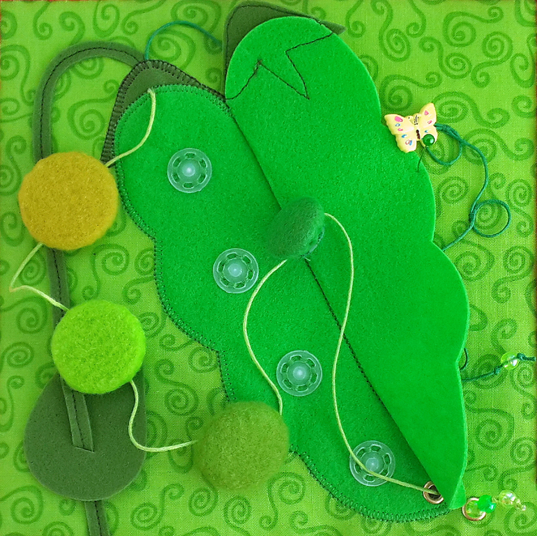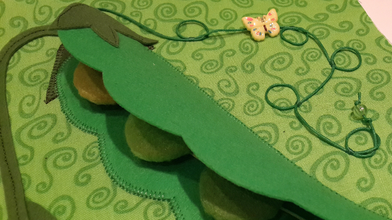 Горошины на пластиковых кнопках. Очень приятно ложатся в ладошку. Можно передвигать по шнурку.