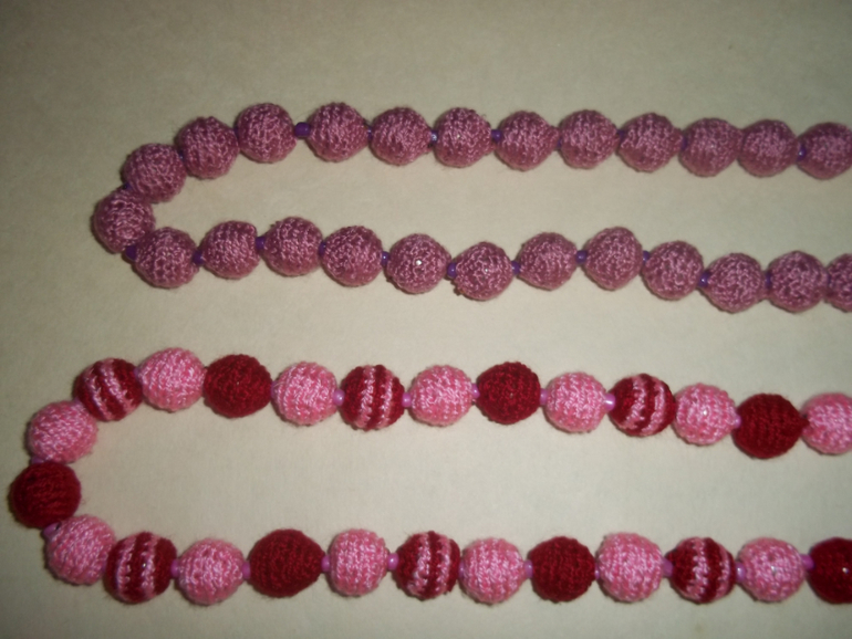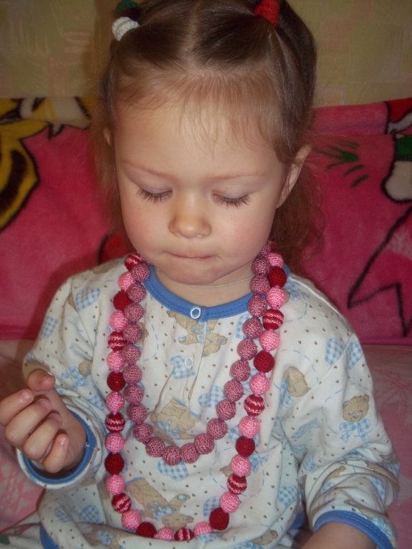 Вязанием особо не увлекаюсь, совсем немножечко, вот связала себе и доченьке несложные бусики-