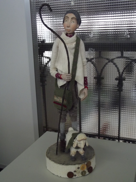 Очень старичка долго рассматривала, у него все лицо в мелких морщинках, композиция называется "Встреча", папье маше, войлок. мастер Е. Козуненко из Санкт - Петербурга.