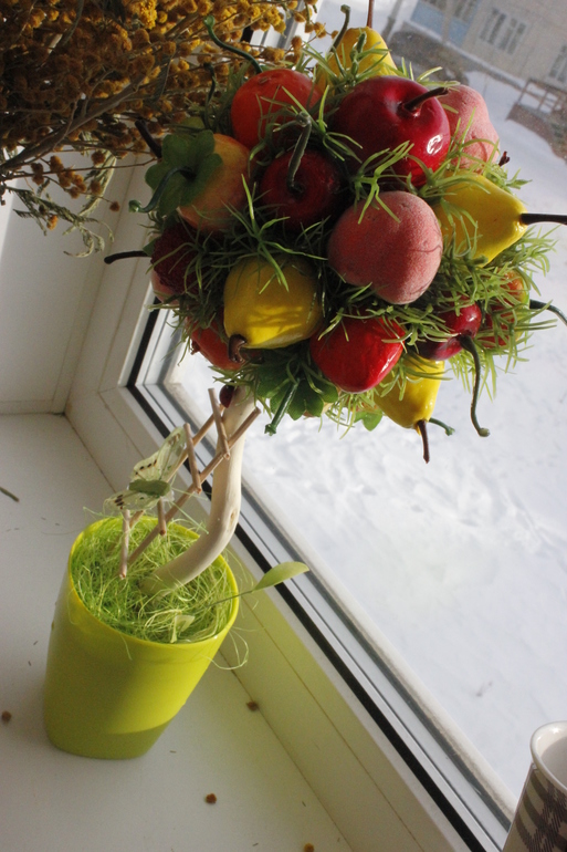 Всем привет.Вот впервые сделала фруктовое дерево и так оно мне понравилось, такая красота, ярко и по летнему,аж отдавать не хотела=)