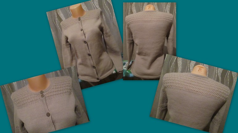 Связала для дочки вот такую кофточку.Пряжа 1 нить "Аэлита" 781 м в 100 гр и 1 нить "Лидия" 1600 м в 100 гр.Лицевая гладь машинная вязка, а ажур и платочная на спицах.![]()