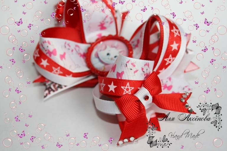 Американский бантик "Кошечка Мари" в красных тонах для маленькой брюнеточки.