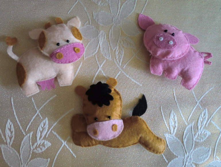 Пошились еще до НГ у меня зверюшки из фетра на магнитах. Уже волка успели потерять))