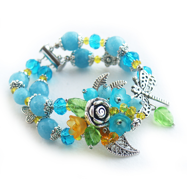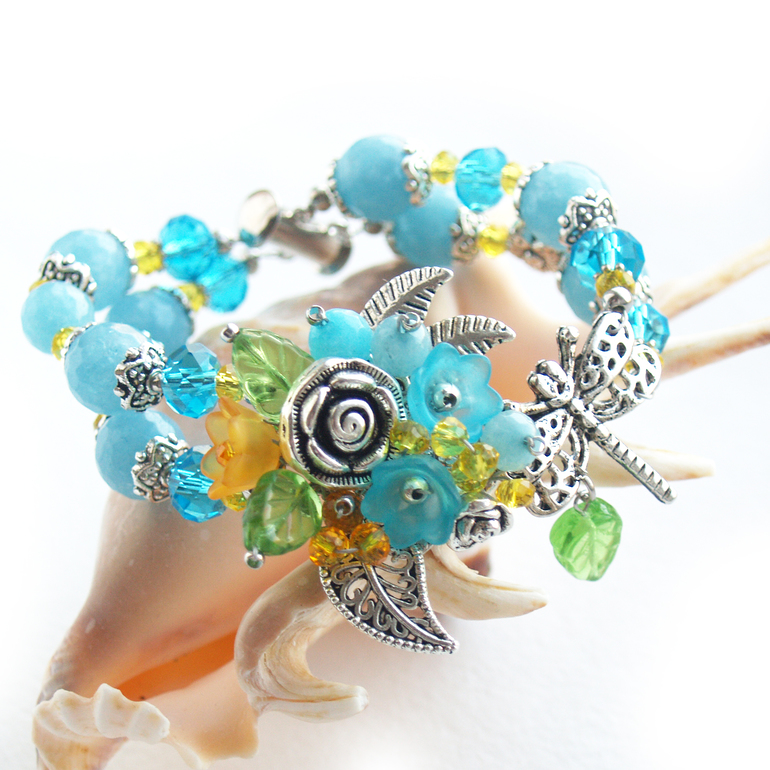 Очаровательный браслет в голубых тонах! Создает весенне-летнее настроение.