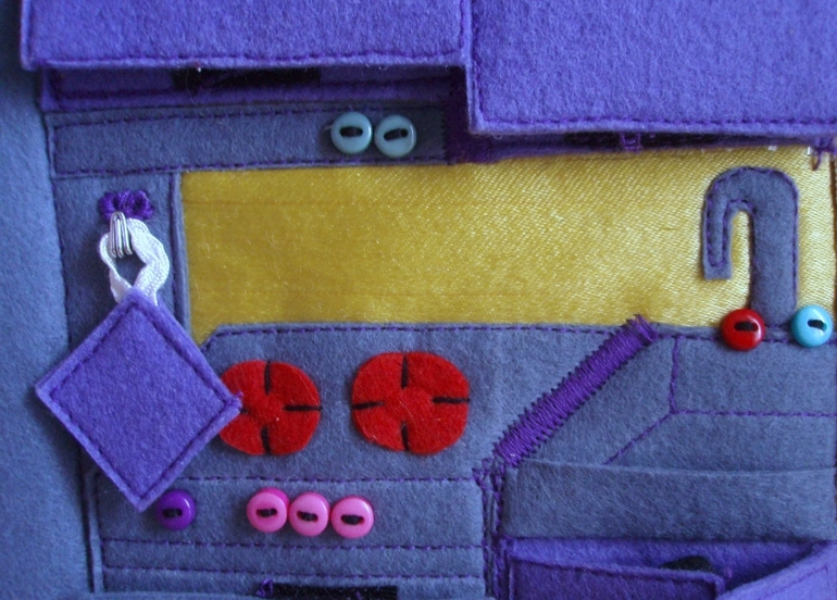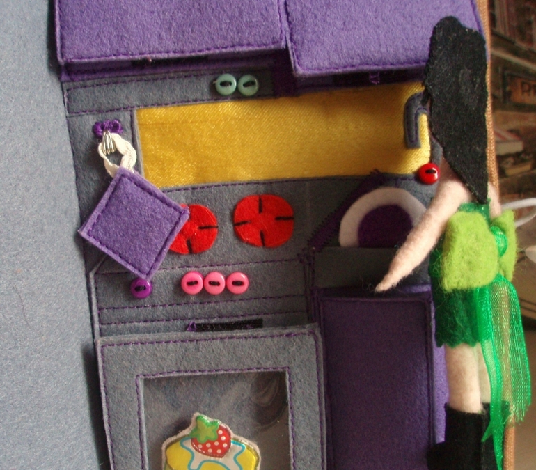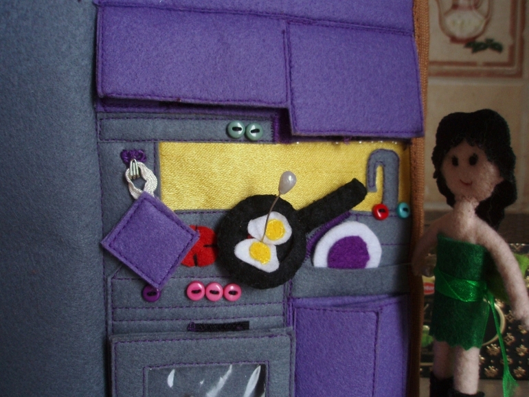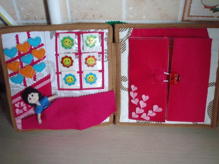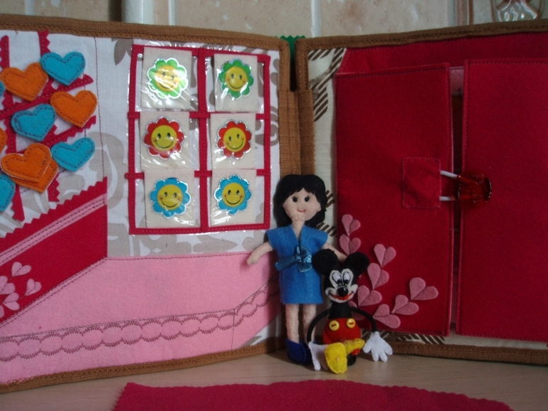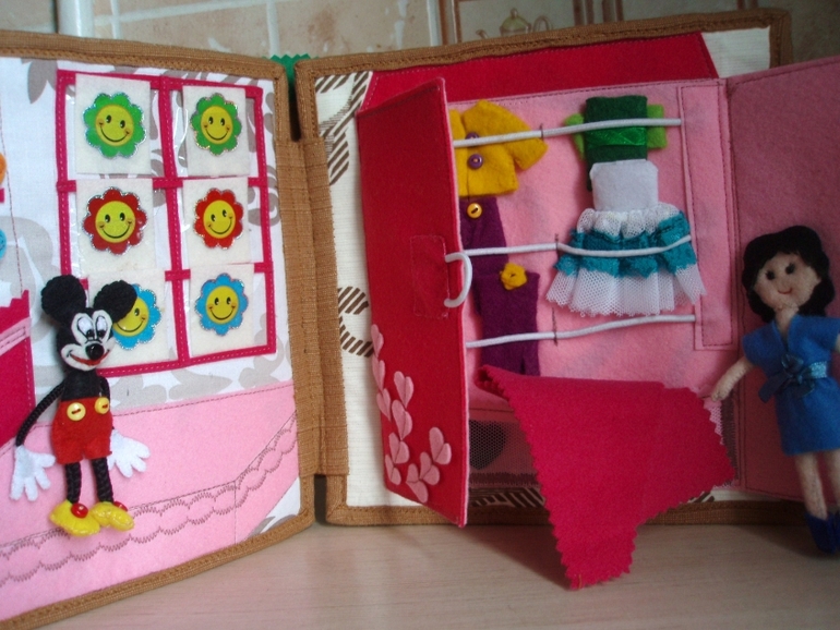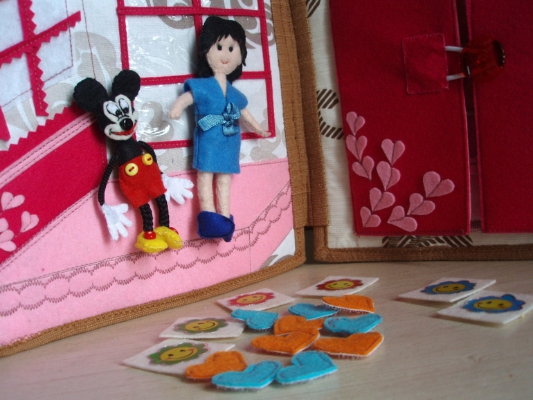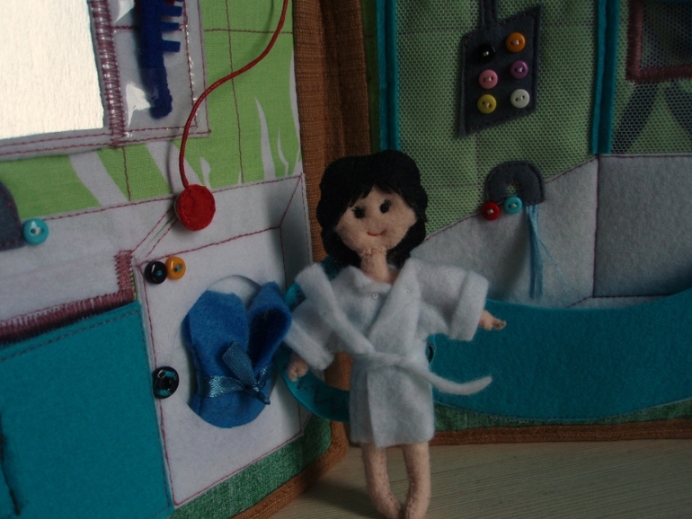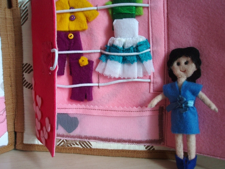 Кровать (одеяло хранится в шкафу). Две игры - мэмори и крестики-нолики. Шкаф. Хозяюшка знатная модница!