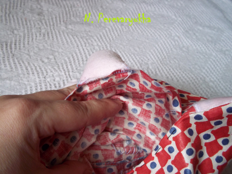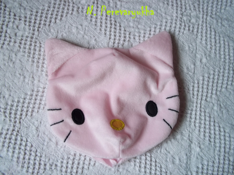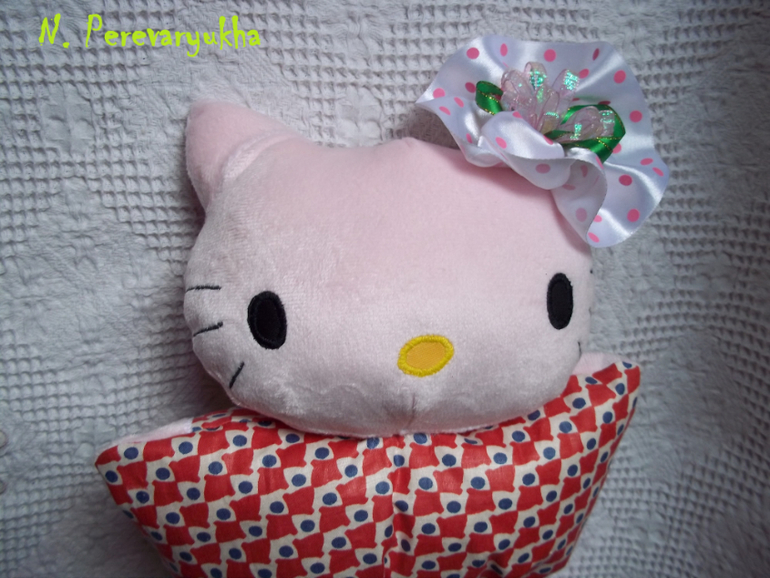 выворачиваем и через не зашитое отверстие пришиваем изнутри головку Китти