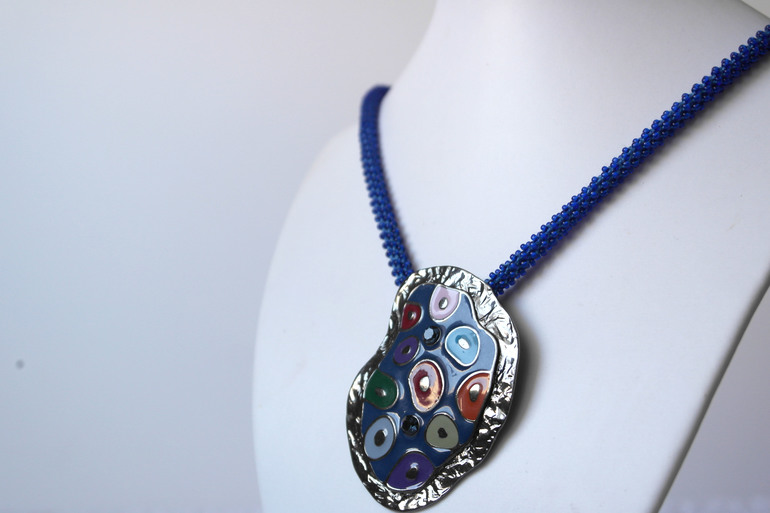 "Синяя абстракция" - я небольшая поклонница абстракционизма, но эта подвеска очень красивая, мне показалось, она вполне яркая и не стоит утяжелять ее пестрыми нагромождениями.