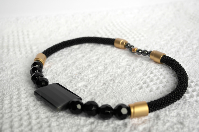 "Маленькое черное платье" - любимое украшение) С ним обычная водолазка и юбка превращаются в наряд для вечернего похода в ресторан. А когда просто лежит, кажется таким скромным, не слишком ярким. Чешский бисер, стеклянные бусины, гематит, агат.