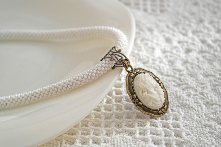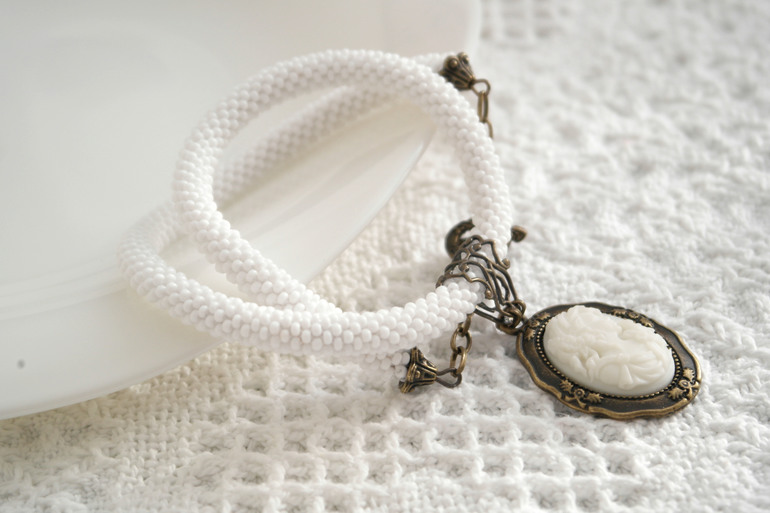 "Lady in white" - моя не помню какая прощальная песня винтажу))) Невероятно нежно смотрится. Чешский бисер, фурнитура под античную бронзу, акриловая камея.