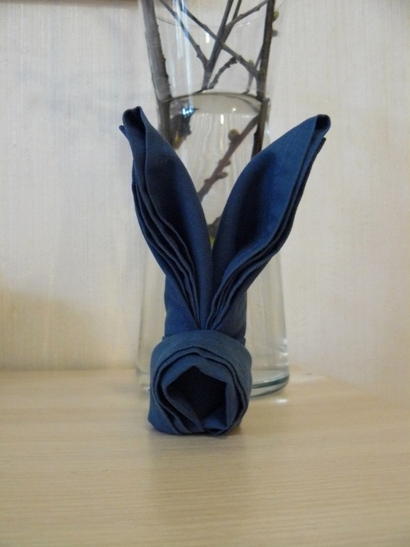 Декор, витражи.Приближается радостный и светлый праздник Пасха!!! Хочу поделиться с вами идеей украшения праздничного стола, которую я нашла на просторах интернета :)) Символ праздника-Пасхальный кролик! Только что попробовала его сделать из синей салфетки :))