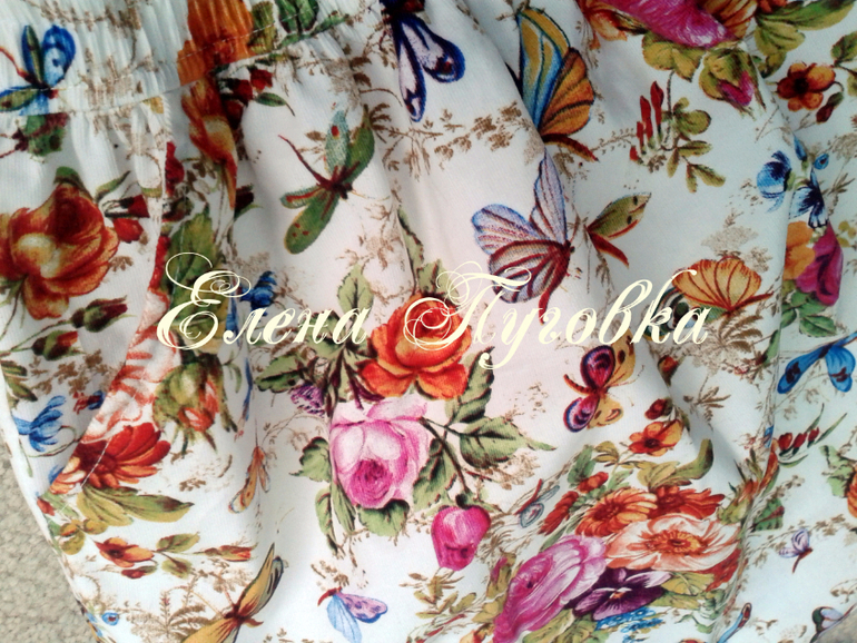 Ткань микровельвет( тонкая,нежаркая) .Расцветка ну просто ах! Приятные на ощупь, с кармашками))