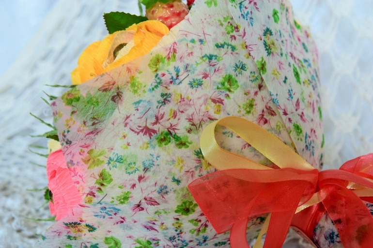 Фетр пролежал пол года точно, дожидался подходящего букетика, дождался)) лента на фото почему-то красная, но на самом деле она в цвет розовых роз
