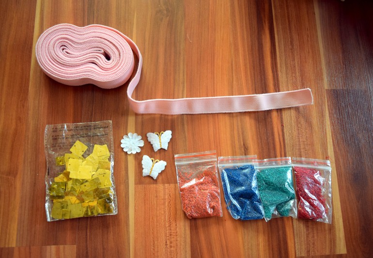 Пайетки, розовая резинка, разноцветный песок