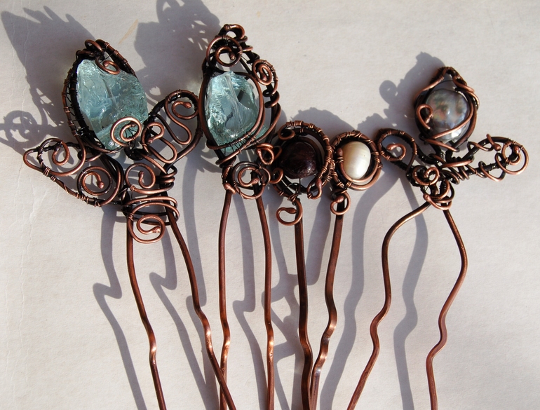 Шпильки в волосы из проволоки и натуральных камней и Мастер-класс