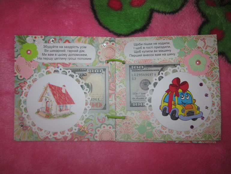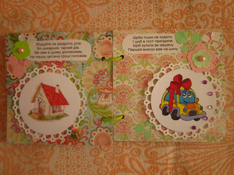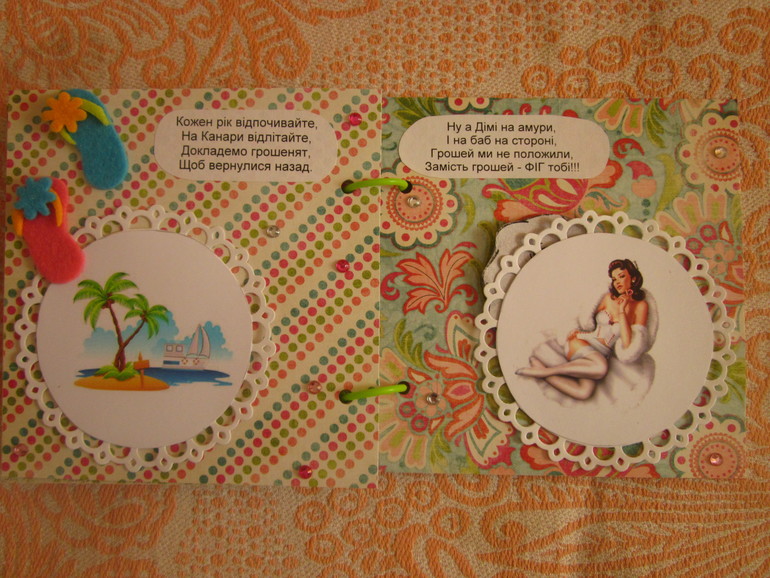 СкрапбукингВ добавок к метрике сделала молодоженам сберегательную книжку. Идею подсмотрела на просторах интернета. Вот что получилось: