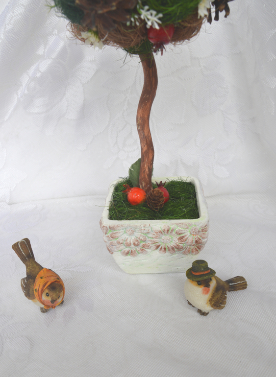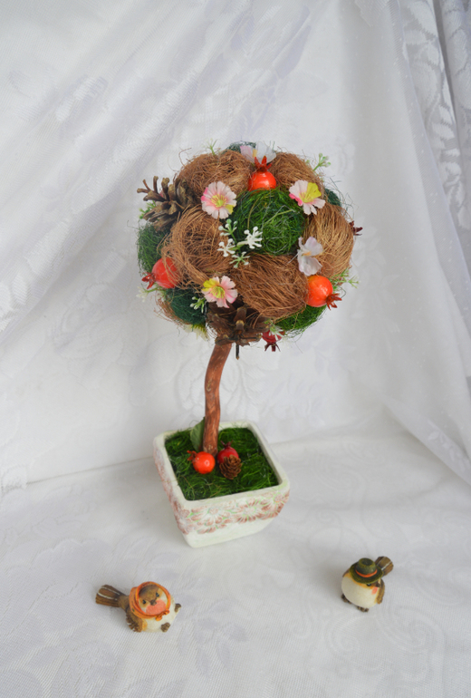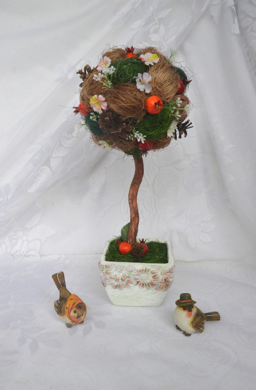 У вас получился просто замечательный топиарий. Я тоже в скором времени хочу попробовать сделать топиарий своими руками уже нашла подробный мастер-класс здесь http://101dizain.ru/topiarij-svoimi-rukami/ оказывается это не так сложно.