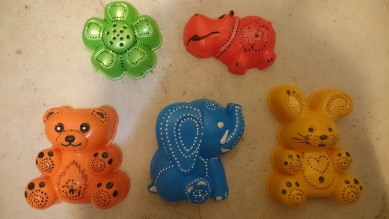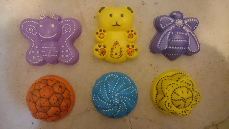 прикольно! Идея для опознавания своих игрушек отличная! :) жаль только, чтопрогулки за 2 с формочек все сотрется...