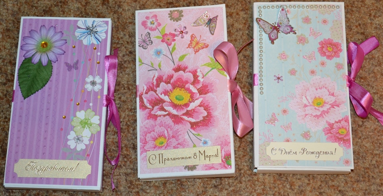 Тем более в преддверии Международного весеннего праздника очень хотелось поздравить некоторых Сониных учителей. Хотелось педагогов старших деток не обидеть, но временные рамки никак не хотели дать мне эту возможность))) Опять делала их вместе с подругой сына (она сделала своей маме на ДР шоколадницу) Очень ей нравится что-то творить вместе со мной)))