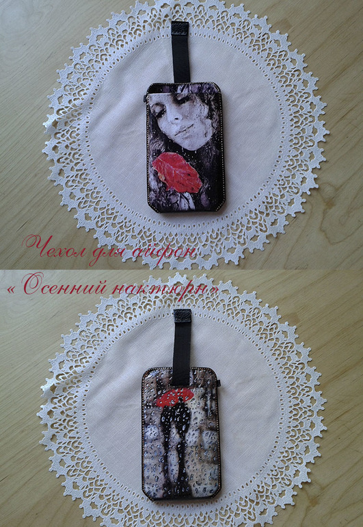 Чехол-карман "Осенний нактюрн" для iPhobe внешние размеры 8х13,5см. (Самсунг тоже себя в нем отлично чувствует :)). Натуральная кожа. Внутреннее покрытие синтетика. В декорировании использованы: лаковая распечатка, акриловый лак, контур бронза, 3Д-контур, финишное покрытие стекловидный лак.