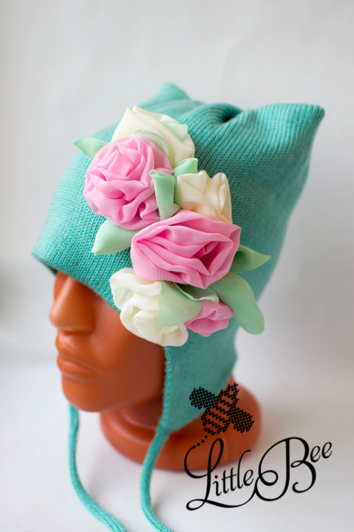Спасибо, стирать бережно ручками))), все цветочки прошиты, не распустятся, после того как высохнет шапочка, пройтись паром по цветочкам и они расправятся. При желании можно композицию сделать съемной, но так как она достаточно большая, я решила, что лучше ее пришить.