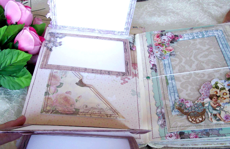 Альбом посвящен 1 годику "маленькой принцессы". Размер 18*23, пять разворотов, 10 страниц. Мягкий переплет, обложка из мебельной ткани, очень плотная, мягкая и приятная (и практичная). Вместит около 80 фото, раскладка свободная.