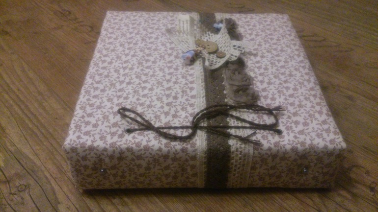 Обложка у альбома выполнена из хлопка. Закрывается альбом на хлопковое кружево.
