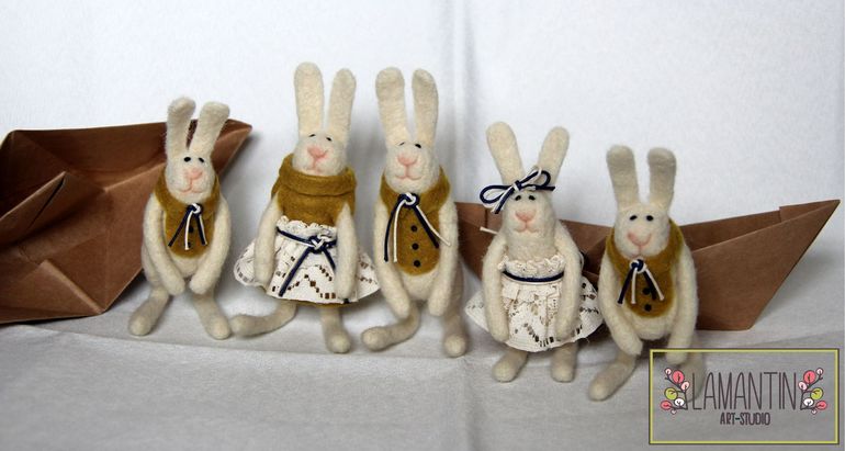 Фелтинг (валяние шерсти)В этом году, пока была на выставке, сделала шерстяного зайчика. И как начали у меня их просить ))) Вот один из заказов - две дружные семейки зайчат )))