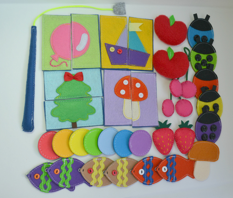 Развивающие игрушкиЕще одна книжечка для малышки, которой скоро исполняется годик. Книжечка размером 23*23 см. В чехольчике. И насчитала в ней - 34 съемных деталек). Как всегда много фото под cut!)
