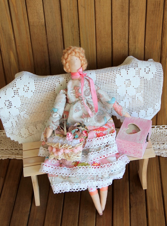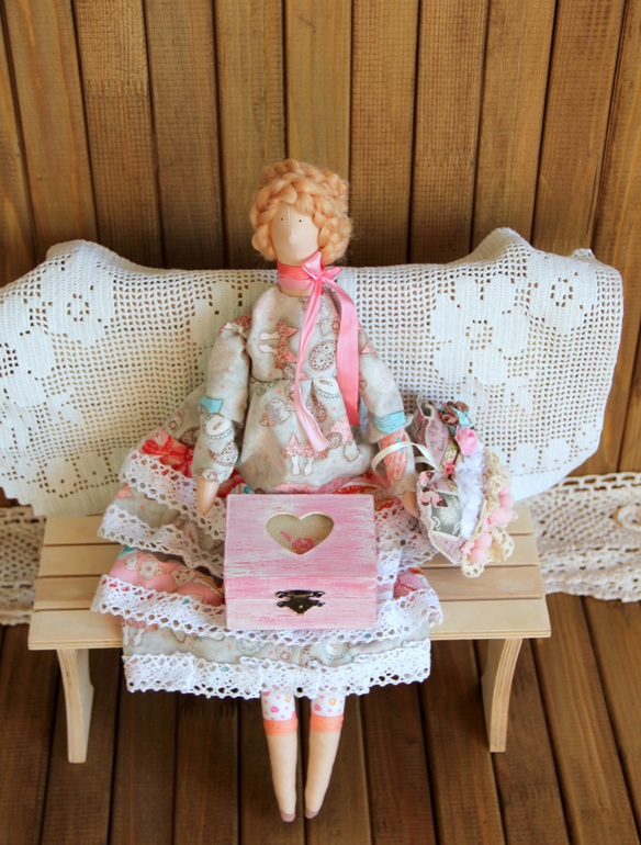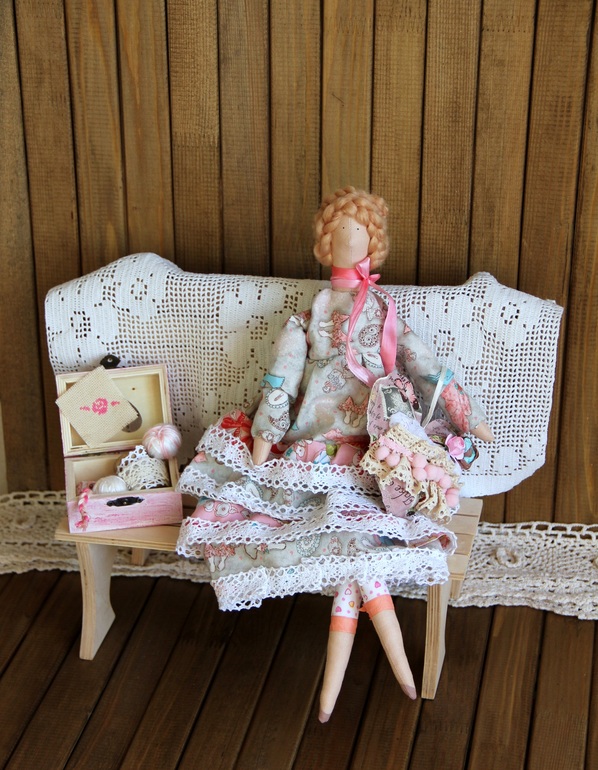 Спасибо, Леночка!!! Не, лавочка как раз старая)))А фото-фон муж подарил на 8 марта, сам сделал))) Горжусь!!))Да, еще не все есть, букет сухоцветов скоро должен приехать... А кружево да, как занавес тоже можно! Оно большое))) Тоже с девочкой поменялась на Тильду))