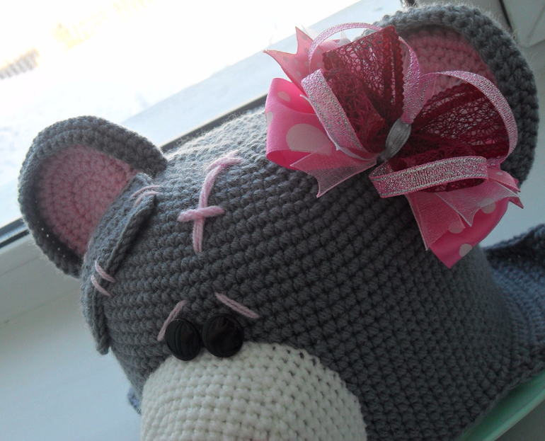Ань,ты такая молодец! Петельки какие ровные,одна к одной! Бантик интересный. Он снимается?