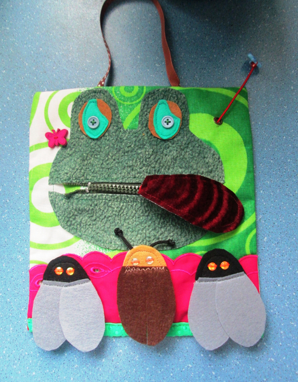 На другой стороне девятого планшетика у нас обитатель болота,которого ,как мне кажется, видели абсолютно все детишки.Но я думаю,что не все дети видели как кушает этот обитатель.И я решила показать,как это происходит.На языке лягушки есть липучка,которая и "ловит" насекомых: