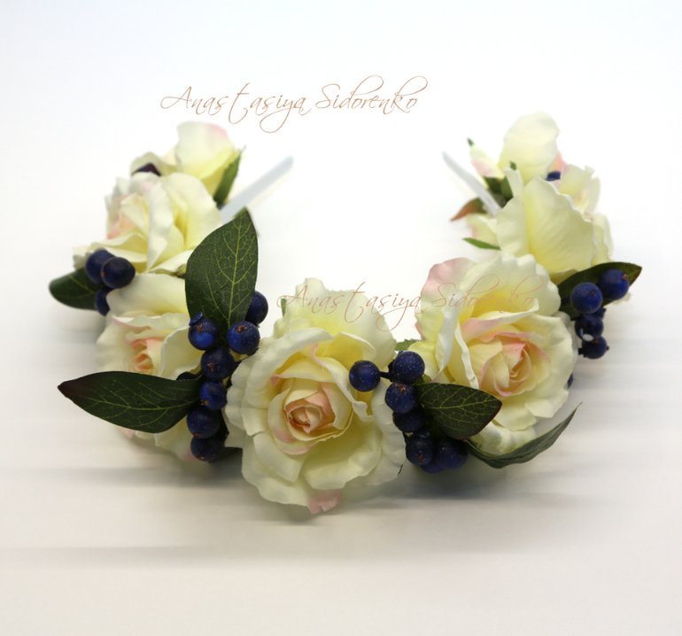 Долго я не решалась сделать ободок в большими розами и наконец сделала, выставляю на ваш суд то что получилось!
