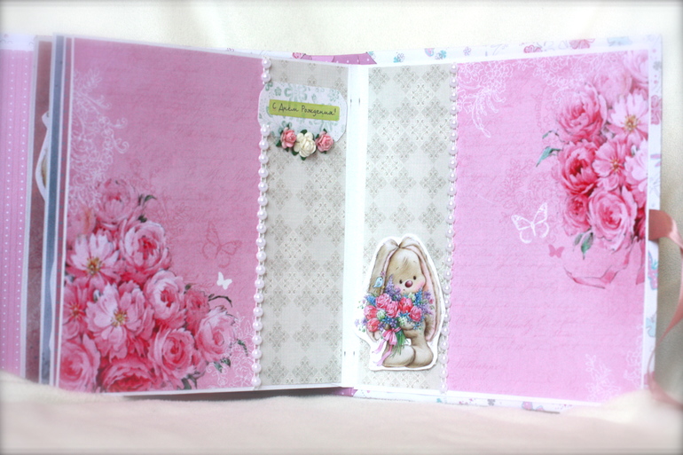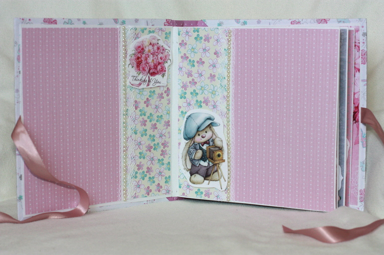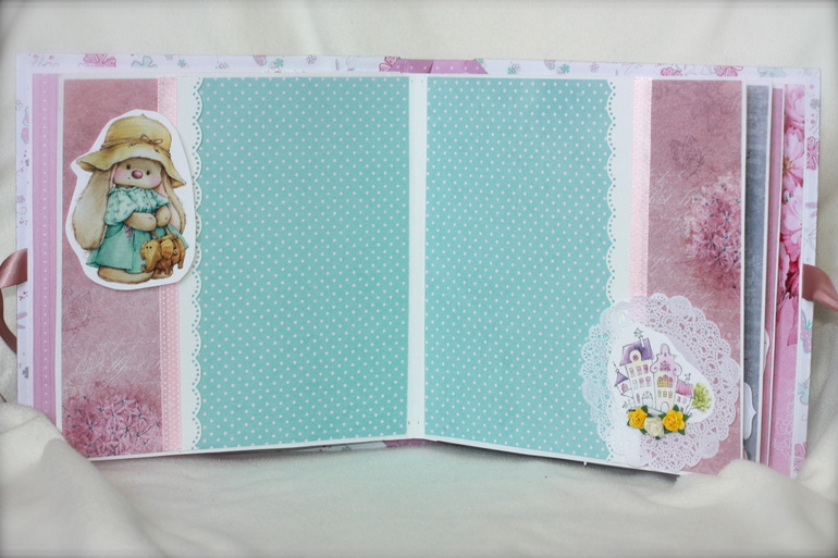 Альбом размером 20х20 на 5 разворотов, все лаконично и спокойно. И уж очень по девичьи)))