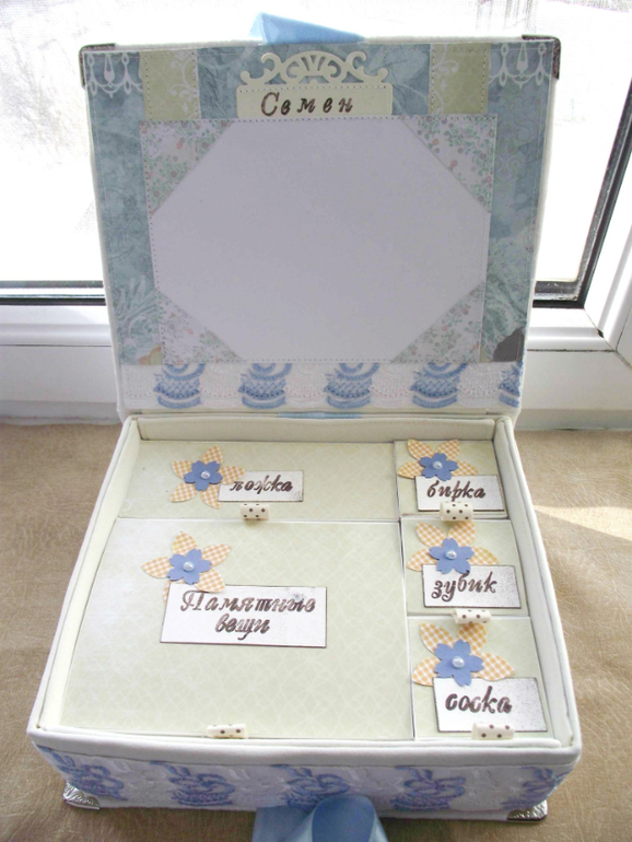 Сегодня я со шкатулкой для хранения памятных вещичек малыша. Сокровищница уже дома у хозяев, поэтому представляю ее вам.