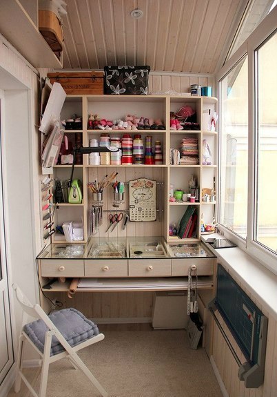 Предыстория: Мы живем в полуторке, тк муж занимается ремонтами, то естественно под инструмент у него своя "коморка") А я вечно работала перебежками по квартире( Но появилось наше долгожданное чудо- дочуля, и все свои сокровища пришлось убрать подальше, повыше, ради безопасности малыша. Стали утеплять балкон, места много, и я отбила, можно сказать, свое местечко для творчества))))))