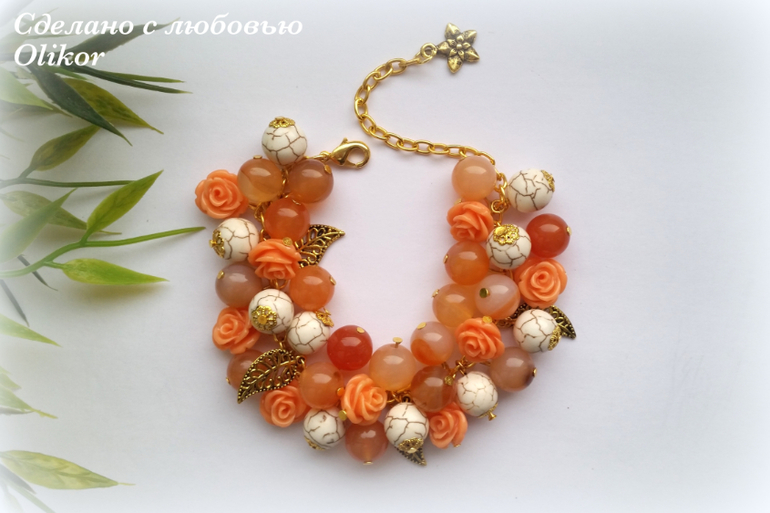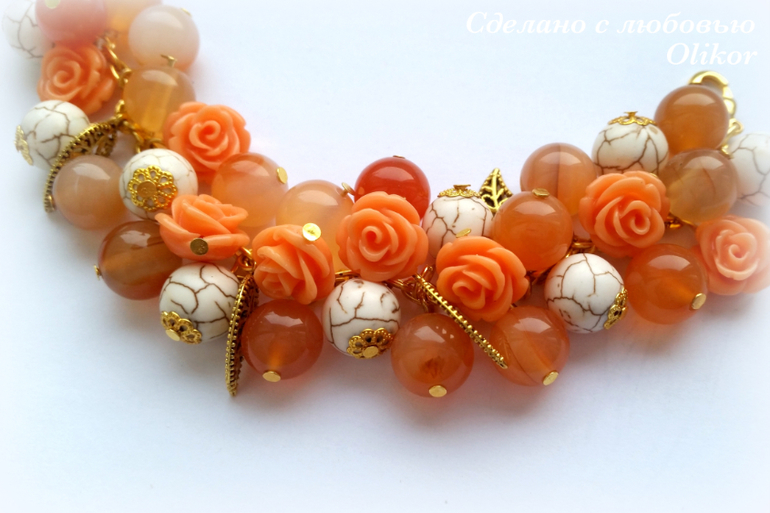 Бижутерия для слингомам. Слингобусы. Грызунки."Сама весна!" - сказал муж, когда я показала ему этот браслет. Что может быть приятнее такой оценки?=) Нежный браслет на цепочке из нежного персикового сердолика, бежевого говлита и резных розочек из коралла.