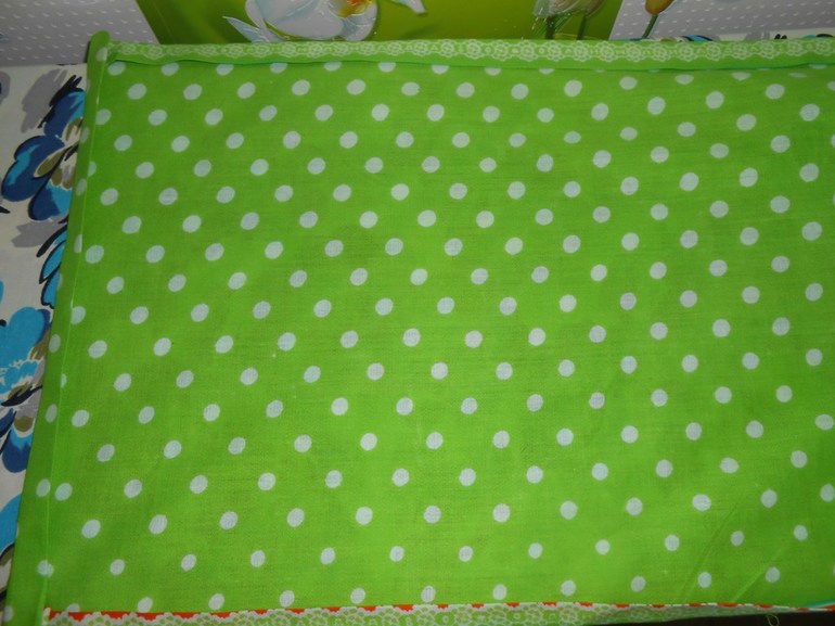 Далее проглаживаем загибы, их будет 4 снизу, 2 сверху и 2 по бокам, у меня нет оверлока, поэтому чтобы материал "не сыпался", делаю подгибку в 2 раза.