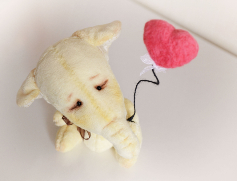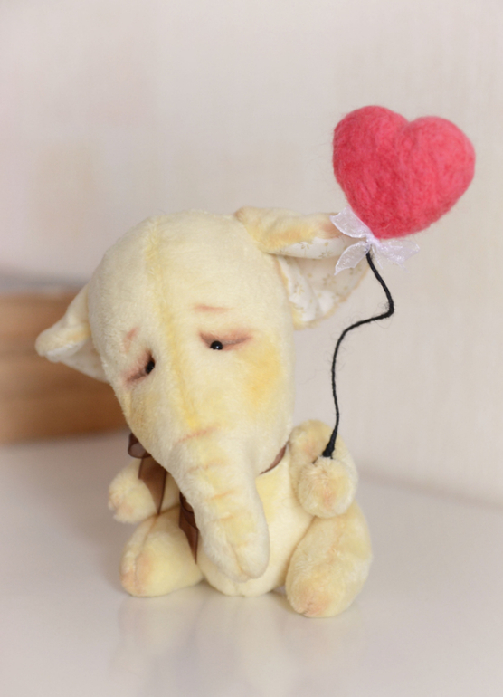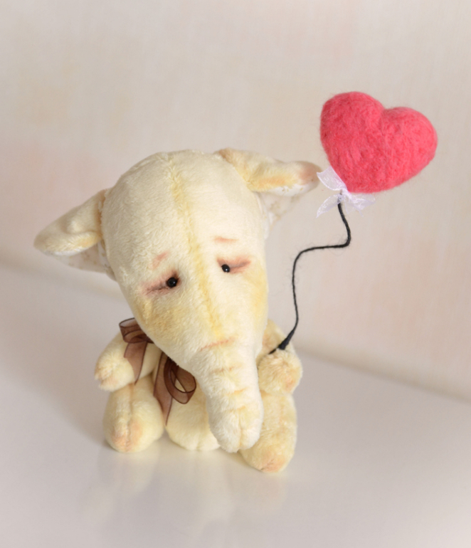 Слоненок сшит из нежного плюша, утяжелен минеральным гранулятом. У него стеклянные глазки, а тело тонировано пастелью, внутренняя часть ушек 100% хлопок.