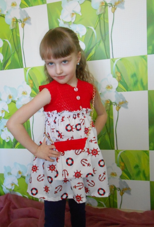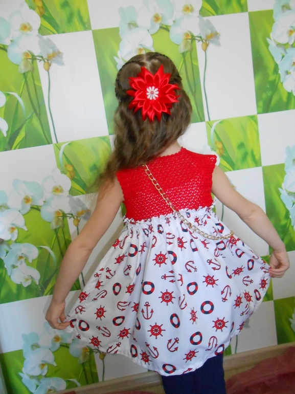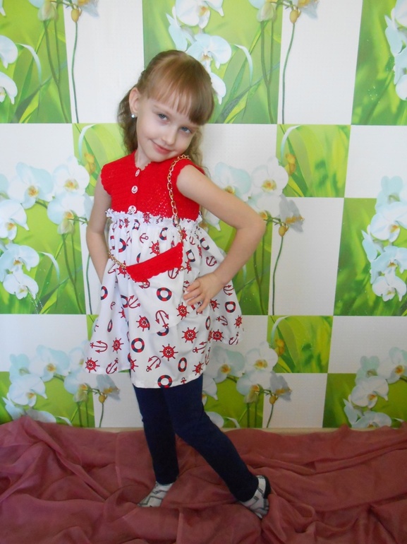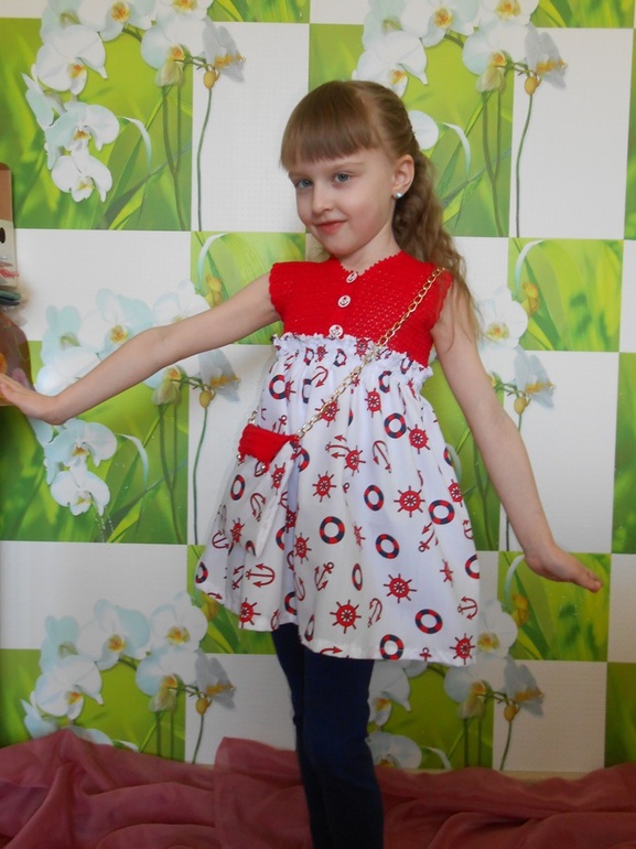не знаю, можно ли хвалиться в комментах, но меня распирает, у нас вот такое комбинированное платьице на лето, изначально тоже планировала в морском стиле, но передумала в процессе)))