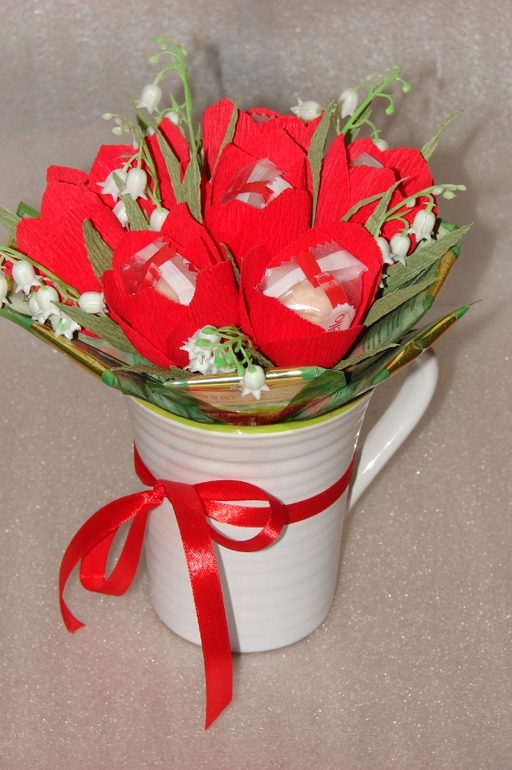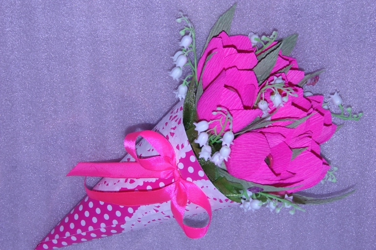 Ох, неравнодушна я к букетикам в конусе -интересно смотрится. Если не секрет, в конусе пенопласт или пустота?