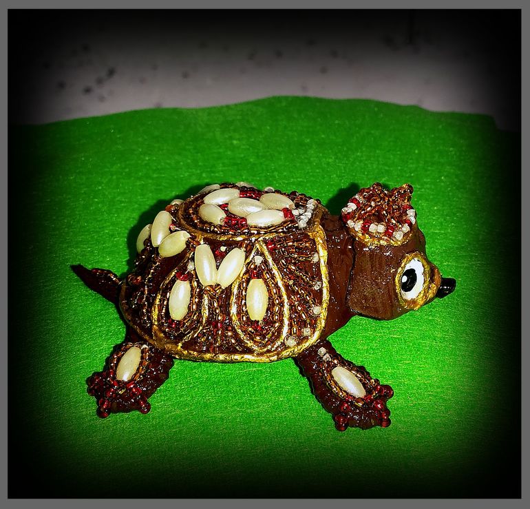 Игрушечный мир - животныеДа-да, такое помпезное имечко выбрала себе моя черепашка, прошу любить и жаловать. Итак, мне понравился этот материалец - лоточки из-под яиц - и из него же родилась эта черепашка. Ну, а расшить что-то нестандартное бисером у меня уже давно руки чесались)))